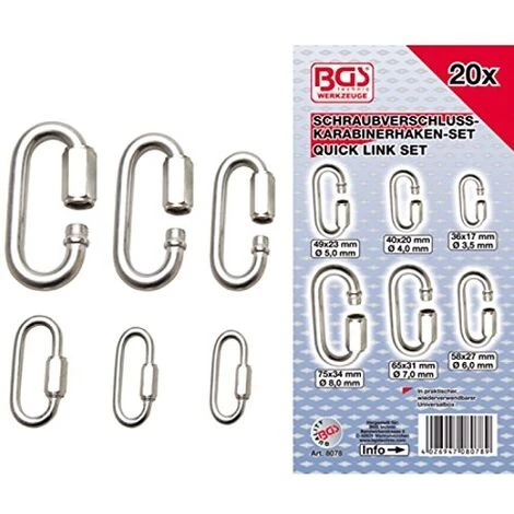 BGS TECHNIC 8078 MOUSQUETON AVEC VIS ASSORTIMENT DE 20
