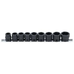 9 douilles à choc extra plates – 6 pans de 13 à 24 mm – carré 1/2 (12,5 mm) Pour cliquet et clé à choc.