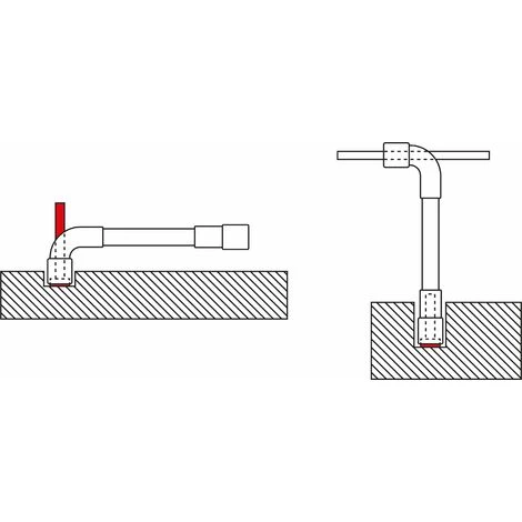 - particulièrement approprié pour les goujons et les écrous situés en profondeur sur des tiges filetées, où une clé annulaire normale en version coudée ne peut pas être utilisée