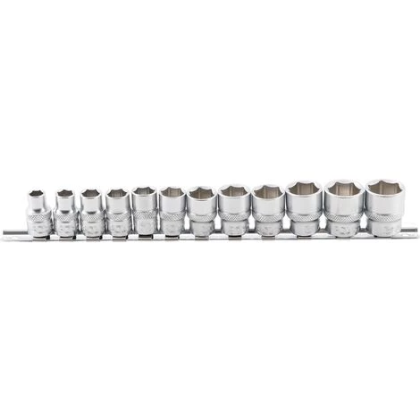 - Douilles pour clé, carré 10 mm (3/8 ») : 8 – 9 – 10 – 11 – 12 – 13 – 14 – 15 – 16 – 17 – 18 – 19 mm