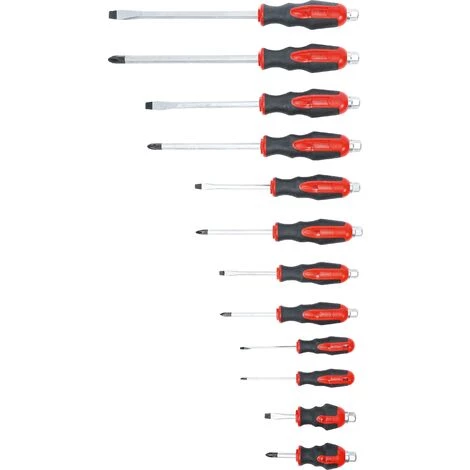 - Tournevis plat : 3,2 x 72 mm – 5,0 x 75 mm – 6,0 x 100 mm – 6,0 x 38 mm – 8,0 x 150 mm – 9,5 x 200 mm