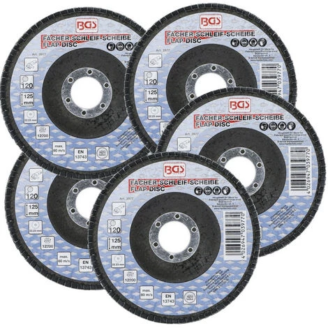 5 disques à lamelles Ø 125 mm – 22 mm – grain de 120 – BGS Technic.