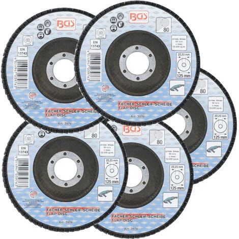 5 disques à lamelles Ø 125 mm – 22 mm – grain de 80 – BGS Technic.