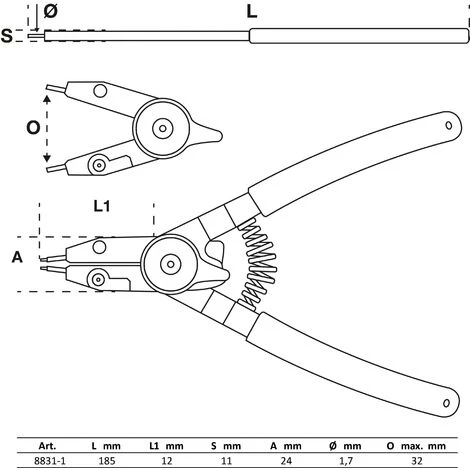 - Commutable, convient pour circlips intérieurs et extérieurs